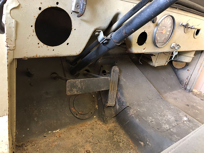Yet, the body has what should be a post 1959 fresh air vent on the passenger side. And, the transmission cover certainly isn’t standard, even for column shift DJ-3As (I have original covers in both of mine). I left unsure exactly what year this was, but it was most definitely an automatic.