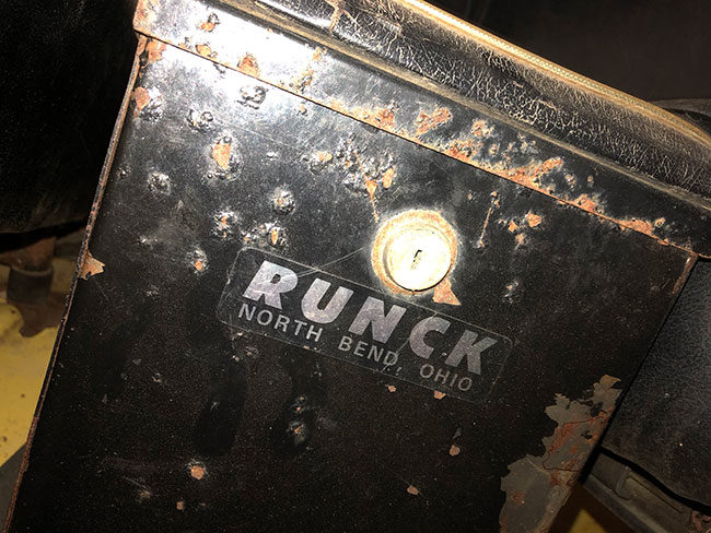 About this time I was looking at a CJ-5 that I thought had a Dumas seat in between the standard seats, but then I realized it had no seat-back. It was just a padded console. Rick explained that it was made by Runck, a company that also made roll bars, roll cages, bumpers, and side strips. I’d never heard of Runck, but I got a quick education on them as Rick and Paulette had a variety of examples.