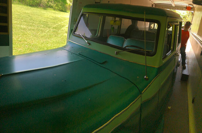 Our second stop of the day was at Roger Martin’s house, where he plans on holding another Southwest Ohio FC gathering this summer. Since we won’t be around for that event, I got to have some early hands on FC fun. Roger’s been working on a green and gray FC-170. It runs great, but needs some more body work. He pulled it out of the garage and let me drive it around his property. I liked that it didn’t have a windshield!