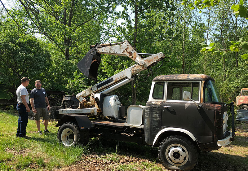This backhoe truck ran just fine and the backhoe works. Rick fired the truck right up, hopped into the seat, and showed us how it worked.
