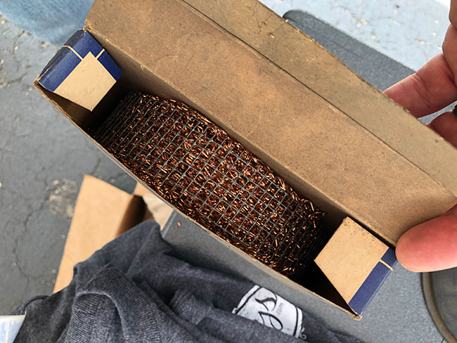 Thanks to Keith for dropping off this copper mesh for the DJ-3A gauze air filter.