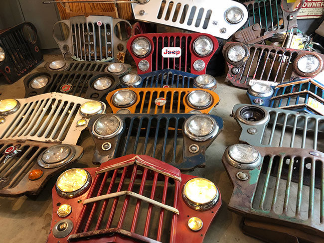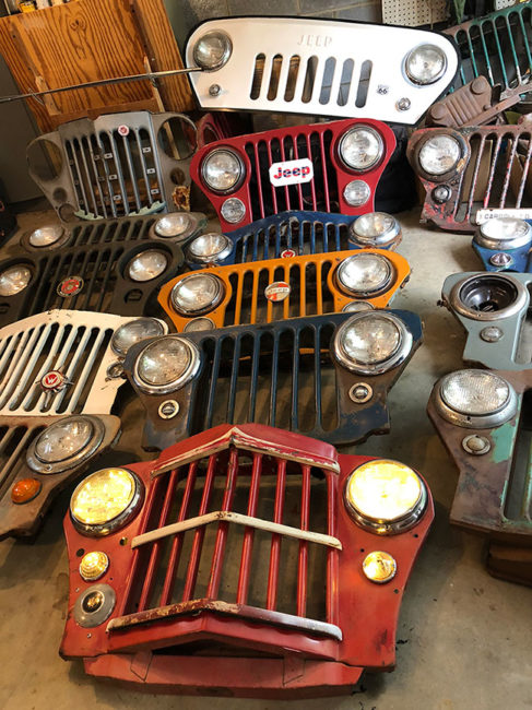 He’s found that, the more rusted the grilles are, the more quickly they sell. Nearly all the grilles were ones no one else wanted, but they can be reused in jeeps if the buyer wishes to do that. The FC grille was one he saved from being scrapped. He sanded the rust off and painted it.