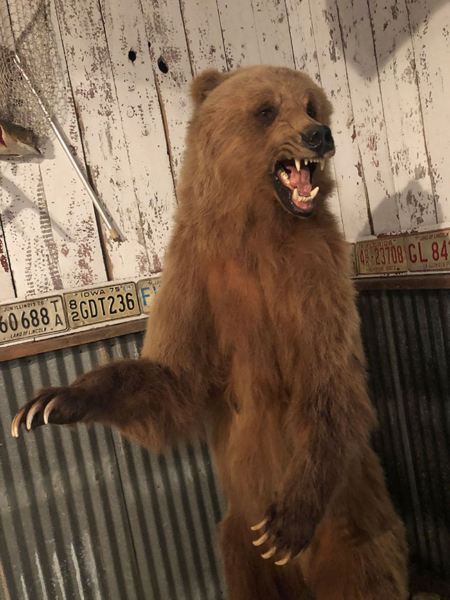 Once again, Russ had to drag me out kicking and screaming, as I wasn’t done, but we had more to see. This time, it was the group’s clubhouse/party place. The “barn” was originally, not surprisingly, a barn, that has been transformed by Scotty and the rest of the crew into a wonderful space for relaxing. The walls are filled with stuff (note to my mother: I think we have everything we need, but the barn and stuffed animals, to build something similar).