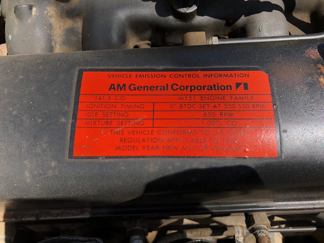 It does appear to be a A2- built by AM General (??). Kaiser also built A2’s. It looks like the emissions sticker says it meets 1976 EPA regulations… a 1976 would be my guess. The A2’s were built from 1968 thru 1982. Maybe it has a replacement engine if the body is a 1970 ??.. Looks great either way !!