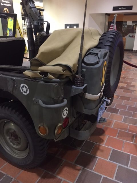 As you can see in this pic, it is claimed the jeep is a 1945 WWII jeep. But, the CJ parts suggest otherwise. It appears the jeep is on loan form the Miami Military Museum at Zoo Miami.