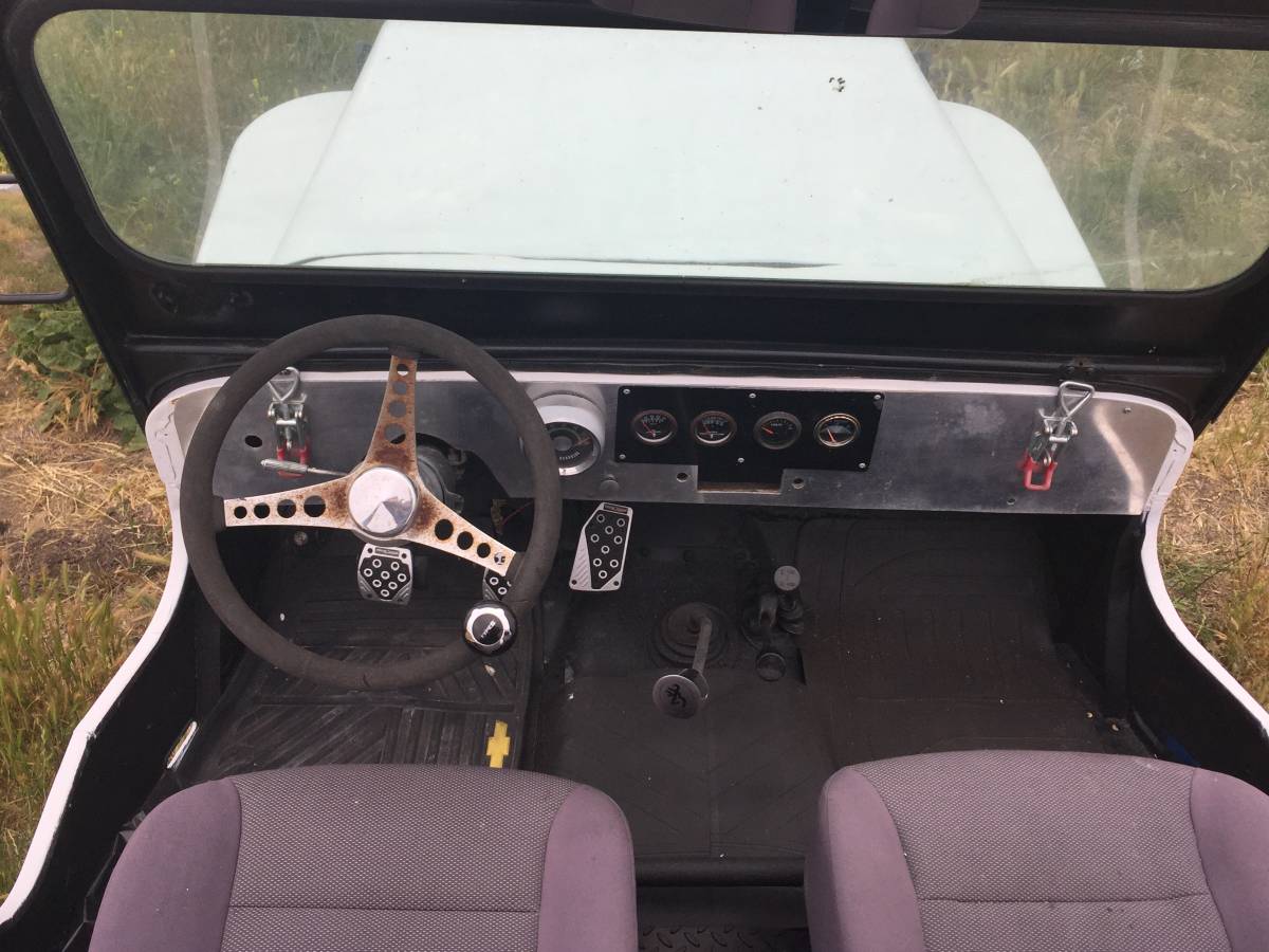 “It is registered as a 1974 JEEP CJ model but I’m told by the Jeep experts that it is actually between a 1946-1949 Willys Jeep CJ2A. If your a Jeep lover this vehicle might be something that you are interested in. It is pre smog certificate, has a 350 Chevy Engine, an Edelbrock 4 barrel carburettor, 3 speed Toyota transmission, 4×4 and locking hubs and a Brand new high end battery. All function and work great. It’s is street legal and registered through 9/18. The Headlights and taillights need to be hooked up and the new seat belts need to be installed. Tires have plenty of miles left on them.”