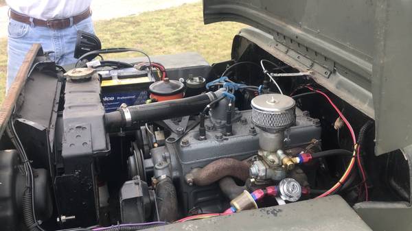 “Flat fender Willys Jeep. Runs very well and all 4wd works well. Go-Devil 4 cylinder, three speed. Military tires. New Rancho shocks and stabilizer. 12 volt with alternator. New 8000lb winch. LED offroad lights front and rear. New seat upholstery & Bimini top. Aluminum fuel tank with electric fuel pump. Great for parades and off road events.”