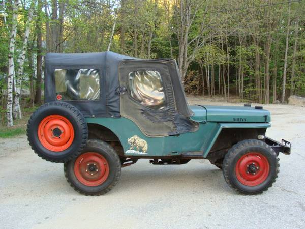 The top is original or period correct and the jeep was apparently always used with the top on. All the original hardware for the top is there. That said the top is unique as it’s original but it has some rips and the windows are cloudy. There were floor mats throughout that were removed prior to taking the pictures.The jeep starts, runs and sounds great. It will need a new exhaust. One picture shows the gages and the reading warmed up and at an idle. Column shift works well but going to 2nd takes a getting used too. Wooden box between the front seats is a 4 place rifle rack. The ID tags on the body, dash and frame are all present and with matching numbers. The body on this jeep while original has been “kept up on” over the years with body work as needed. Jeep is being sold with a bill of sale and a NH registration.”