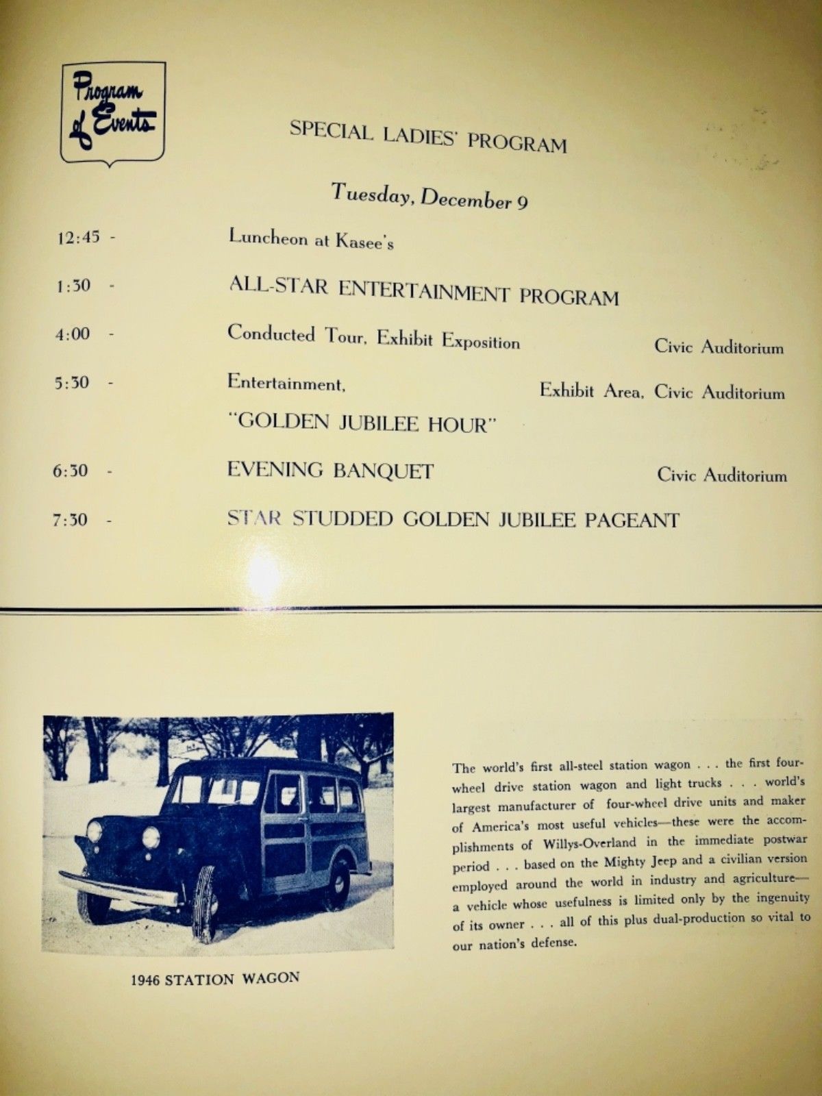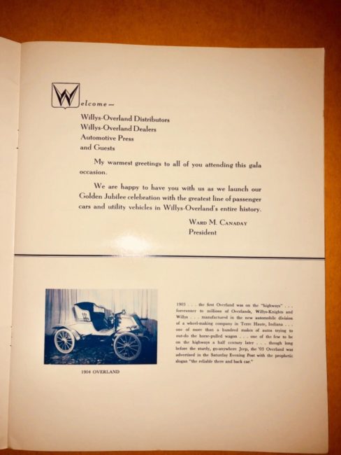 “Willys-Overland Golden Jubilee Program 1903-1953. Original, printed in 1952. Extremely rare! Excellent condition.