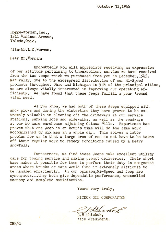 I too thought the jeep *might* not be related to the letter, but it’s the photo that accompanied the letter within the book (maybe the Sales Book creator made a mistake??).