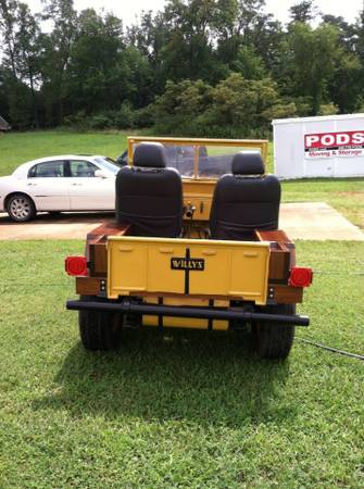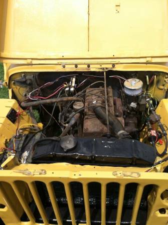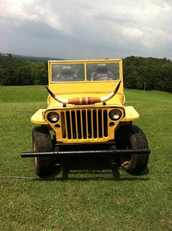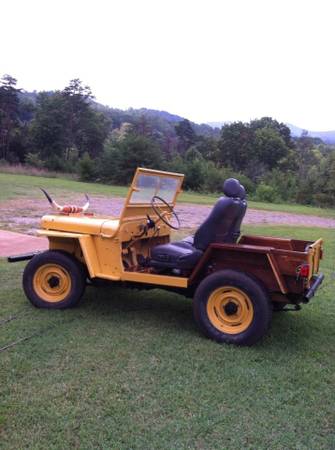 “For Sale is a 1943 Willy’s Jeep with a 1945 engine. I cut the back and floors out as they were rotted (still have) and replaced with black walnut finished with 5 coats of poly. Frame and body are good, but left any holes and wrinkles in body. Removed all rust by sanding and wire brush. Replaced all wheel cylinders, break shoes and master cylinder and one front flex line. All seals are good, no oil leaks and engine runs great, no ticking or any other noises. Fuel tank welded and plastic lines, gage does not work. New emergency break lever and cable, new head light bulbs and LED tail lights. Leather seats with driver’s side having power. New electric fuel pump (still has mechanical one on engine). All new wiring to lights. Rebuilt carb and new air filter and fuel filter. The only thing wrong with this is it pops out of second speed and I am told it is a worn syncro gear in tranny. 4 wheel drive high and low work great.”