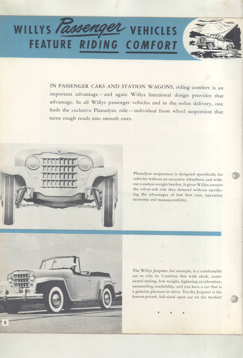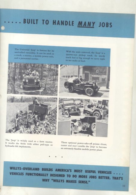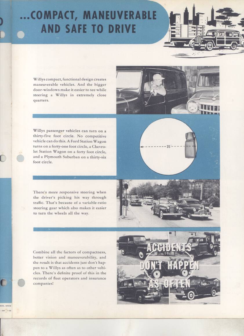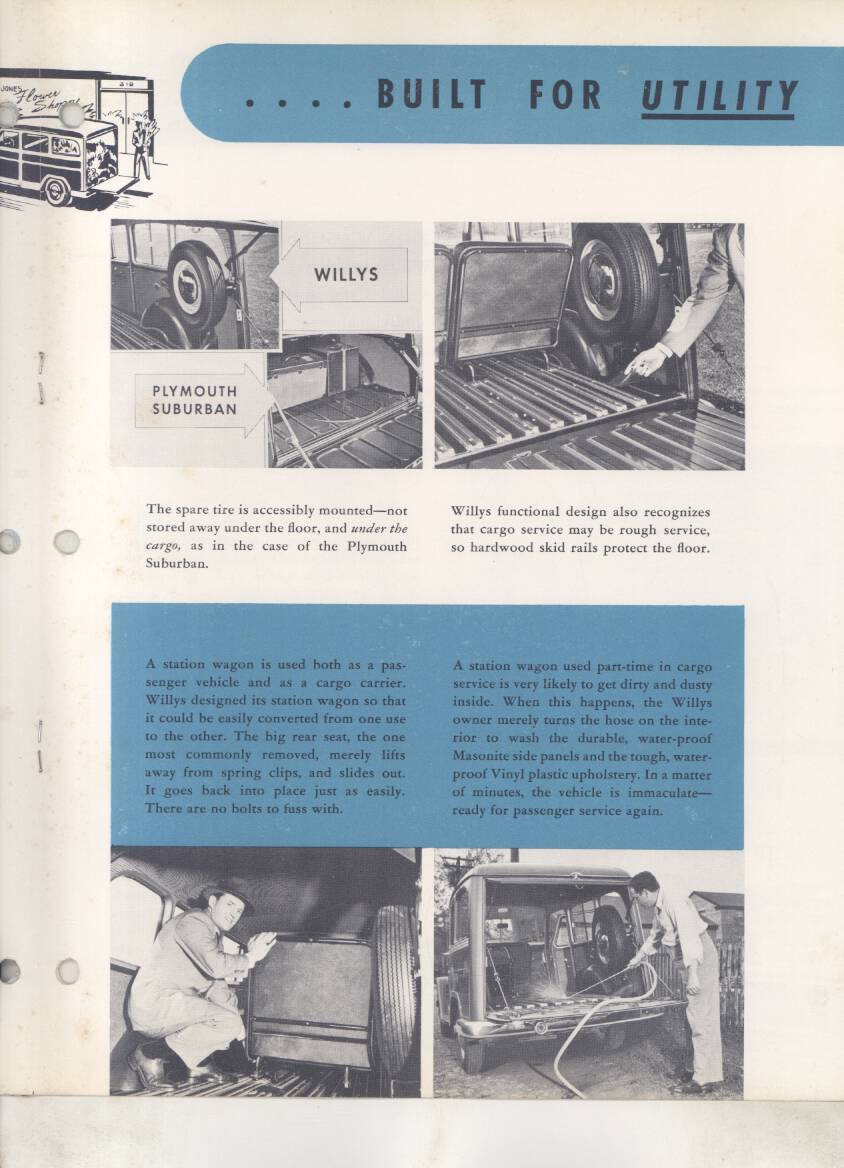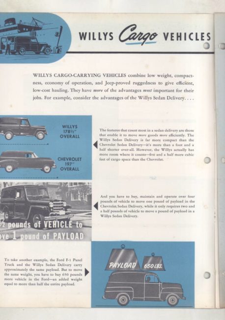 “Original salesman’s part color catalog , 8.5 x 11 , 12 pages, 3 file holes at edge , also includes non color sales sheet , 8.5 x 11 , 2 pages , shows various Willys features , descriptions , etc .”