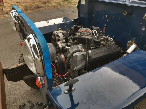 It has a fuel injected V6 (out of a chevy S10) in it with a Sm465 transmission and a Dana 300 transfer case. The body has absolutely no rust and is one of, if not the cleanest 58 Willys I have seen. The drive train is all in and just needs drive shafts to be complete. It also has a brand new tilt column and power steering box which is in and ready to go. The wheels and tires are new. The tires are Pro Comp All Terrain m+s 33×12.50 R15LT. The rear end is all new inside and is a 538 with a spool. The front end is stock with a 538 as well.