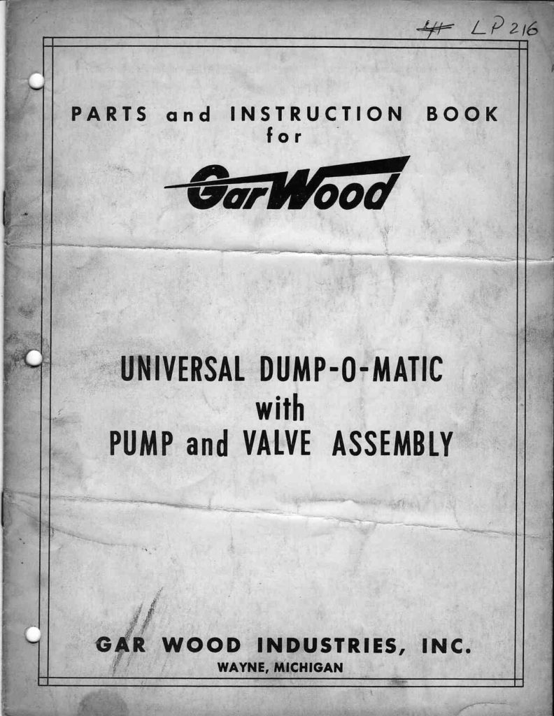 Thanks to Andy for sharing a copy of Eric Voytko’s Garwood Dump Bed Parts and Instruction Book for the Universal Dump-O-Matic with Pump and Valve Assembly. Eric runs http://www.classicrefusetrucks.com.