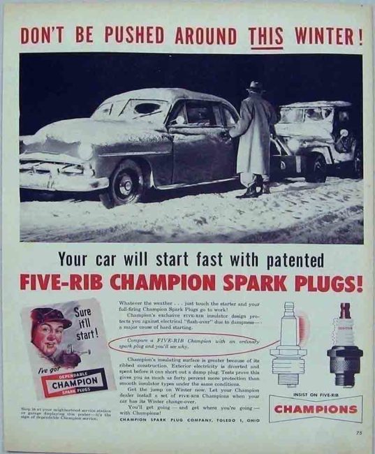 - 1954 Champion Spark Plug Ad with CJ-2A: