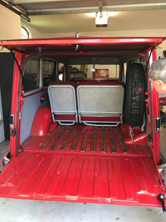 “Listing for a friend. You are looking at a very nice and well detailed 1956 Willys Station Wagon. It is the 4 wheel drive with the Continental 226 engine. It has had a very nice restoration including brand new interior with great attention to detail. Powdercoated seat frames, new upholstery, headliner, floor, etc. All new chrome along with updated stereo as well. New chrome grill. Also has brand new tires including the spare. Paint shows very nice, although has minor rust showing above drivers rear wheel well and bottom right of rear hatch. It also has new wiring and generator under the hood. Attention to detail on this truck is apparent throughout.