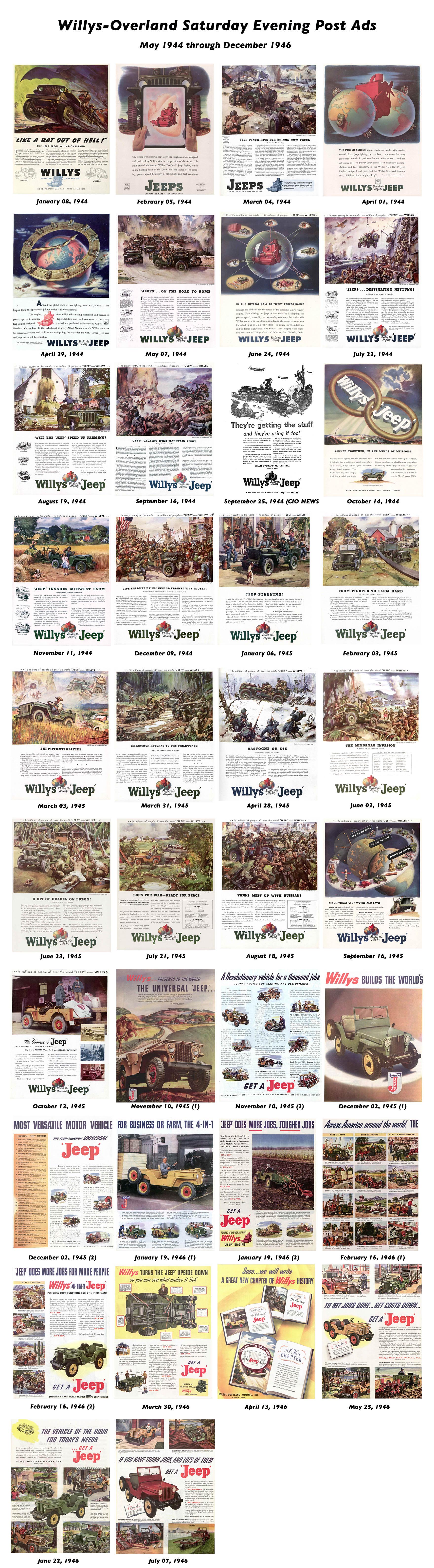 Willys-Overland Ads In the Saturday Evening Post 1942-mid1946