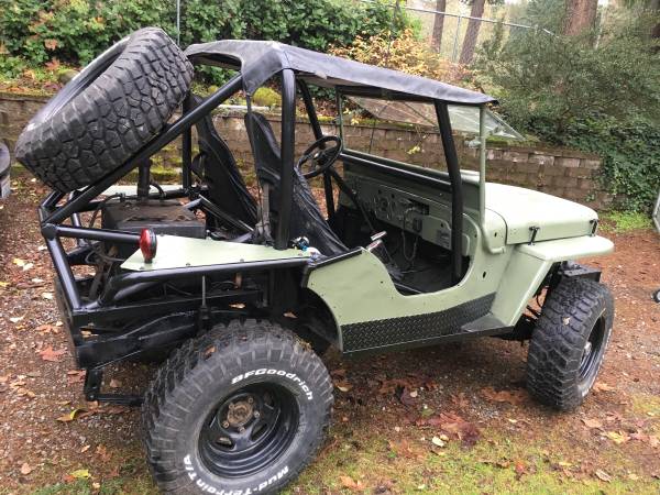 “I’ve got a 1942 ford gpw war Jeep for trade. It has a 134 F head motor runs great has manual 3speed transmission with new clutch put in few months ago and a two speed transfer case. Has early narrow axles out of a 70’s ford bronco Dana 30 front and Dana 44 rear also locked front and rear. It’s got a lot of new parts like a 9000lb Smittybilt winch and new BFG KM2’s 31×10.50R15 on newer black steelies, new steel braided break lines. Has been fully caged and it’s NOT street legal only goes 35mph it’s geared low and has no power steering. (Will need to be trailered) also have a flat tow bar for flat towing.”