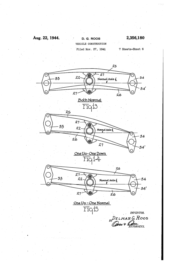 Delmar Roos invented and Willys Overland patented this dual-driving-axle suspension on November 27, 1941.