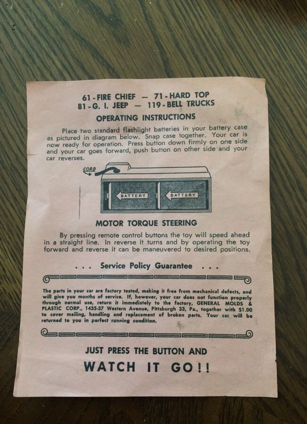 “The Gee I jeep is in good condition with all original paperwork box. Rare piece to find. Was made in different years this is the first. You can color the Jeep any color you want.”