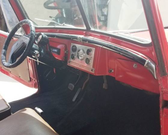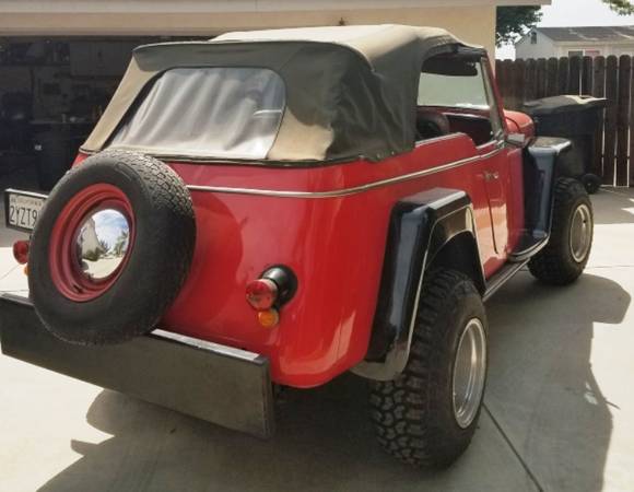 “VERY RARE! Made in 1949 & 50 only. 302 Ford V8, C4 Auto, Floor Shifter, Ford Ranger Pickup Chassis, New Tires, Radio, Alternator, Front seats upholstery, tachometer, all lights work, runs good. $7,000, will consider part trade for smaller car of pre-smog jeep.”