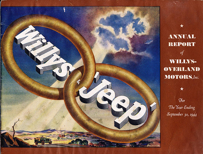 The 1944 Annual Report, which would have been published in late 1944, as Willys-Overland’s financial year-end was September, also featured the linked together theme.