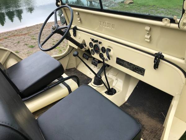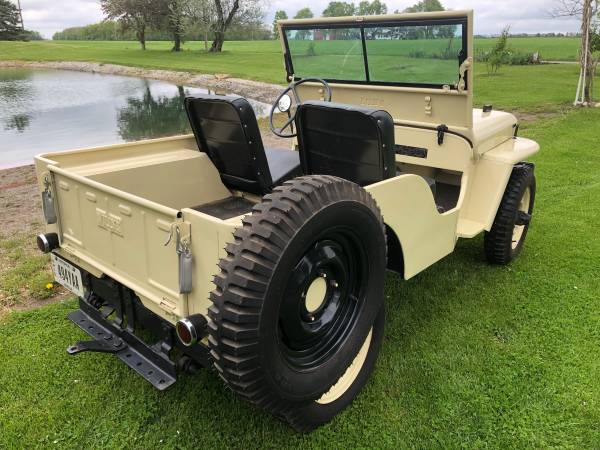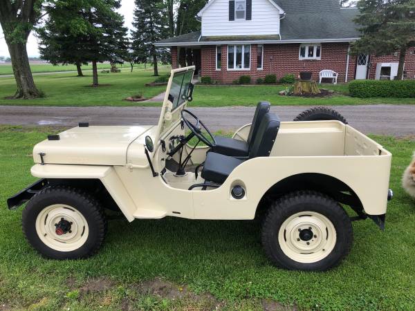 “For sale is a completely restored 1946 Willys Jeep CJ2A. New tub, windshield, hood, fenders, tailgate, gas tank, wiring harnesses, engine, rims and tires, gauges, bumper, seats, radiator, and 12volt system. Repainted with a factory cream paint number.”