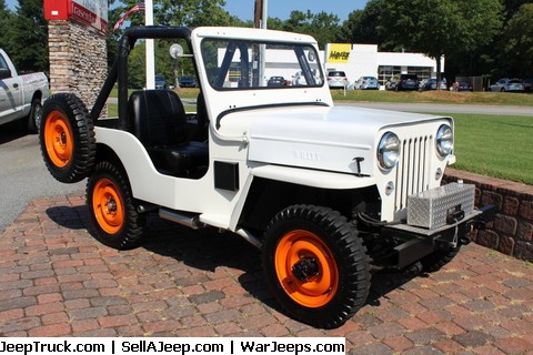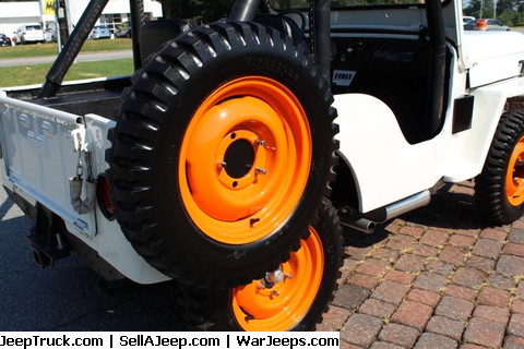 “Restoration just completed, very nice off White, 5 orange 16″ 5 lug wheels with sidemount spare, tires are period Firestone Ground Grip 6.00×16, small block Chevy ‘283’ V8 engine, front Warn Winch with model #Z3500, new front disc brakes installed with all new brake lines, mostly restored as stock with OEM parts, new bucket seats, steering wheel, these are brand new wheels and tires, padded roll bar, new OEM hood that is hard to find, stock 3-speed gear box with high and low gears and shifter handles, stock rebuilt rear end, new black bikini top, new custom cover, reproduction side steps, fresh oil and filter, radiator flushed with fresh coolant, has really has great ‘eyes’, very classy vehicle with great status that is perfect for the beach or the mountain house”