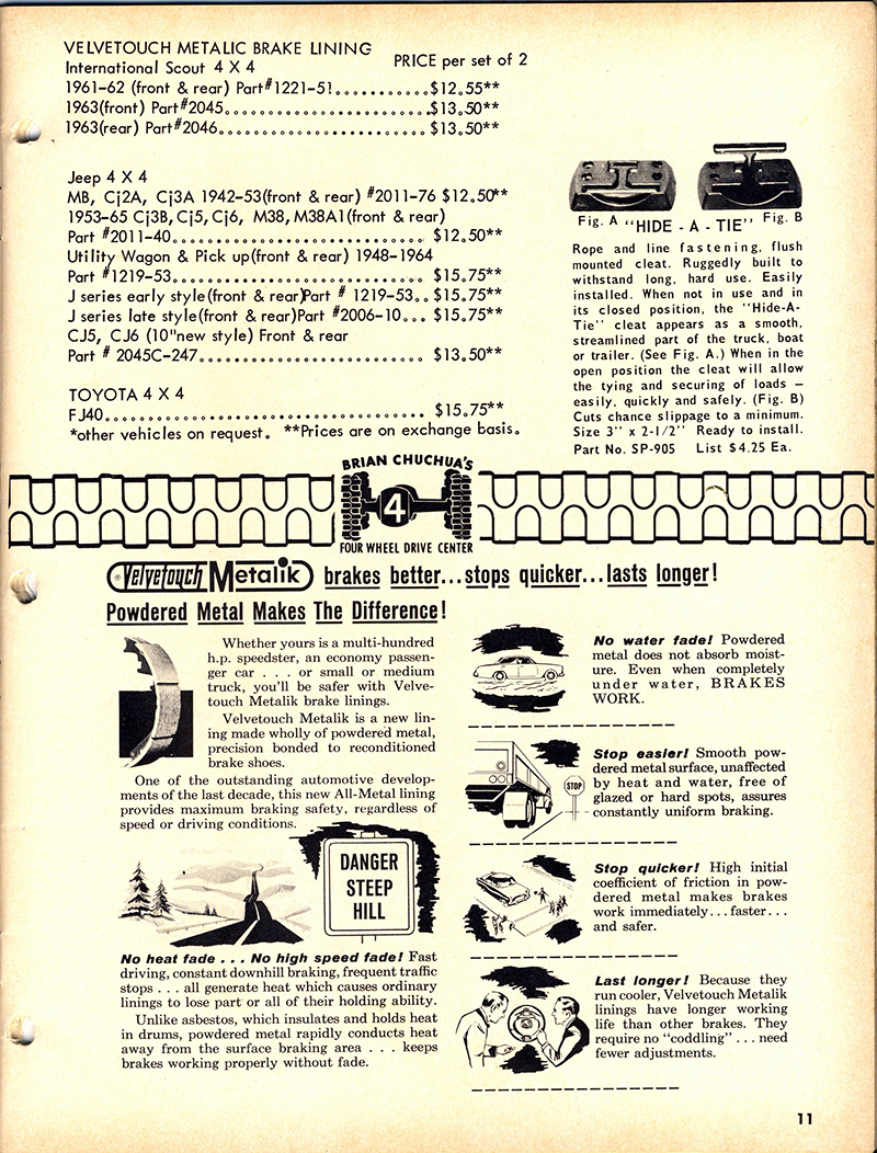 These velvetouch brakes linings were impressive. Dad had a set on his CJ-5 and it was like having power brakes.