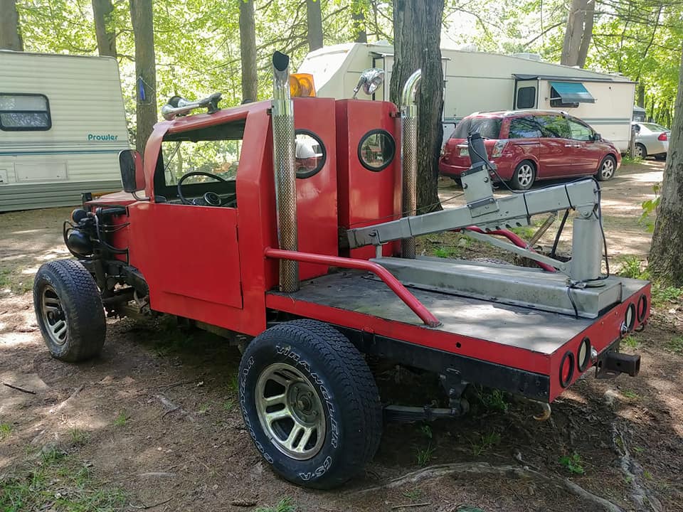 “Custom built mud rig. Straight 6, 4 high, 4 low, engine hoist, plow ready, starts, runs, drives”