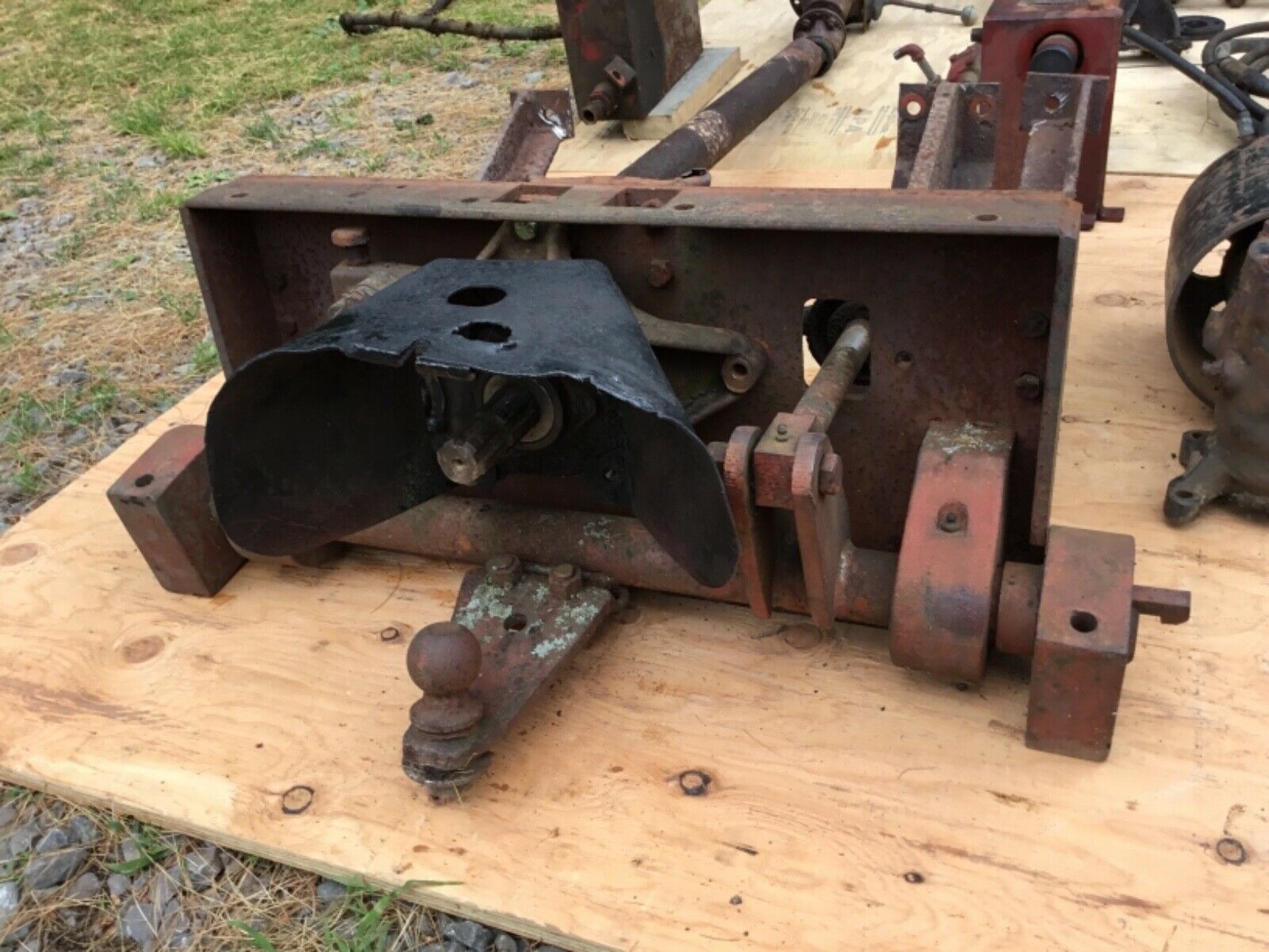 all controls, old hoses and complete pto with right angle belt pulley attachment. Only parts I can see missing are the arms and third link for the three point lift. These parts should be fairly easy to make up using the detailed designers drawings available online