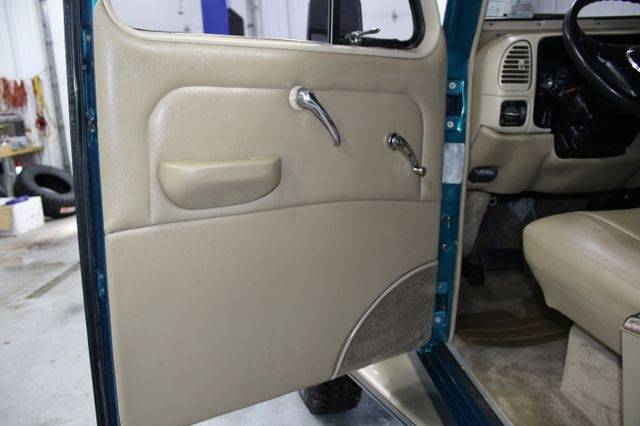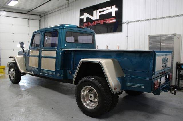 The frame of the truck is from a 1999 GMC Silverado 3500 dually. The body of the Willys was elongated to fit the Dually frame, with all original Willys parts. The interior was completely restore with Buick Rivieria front seats, and custom built bench seats in the rear.