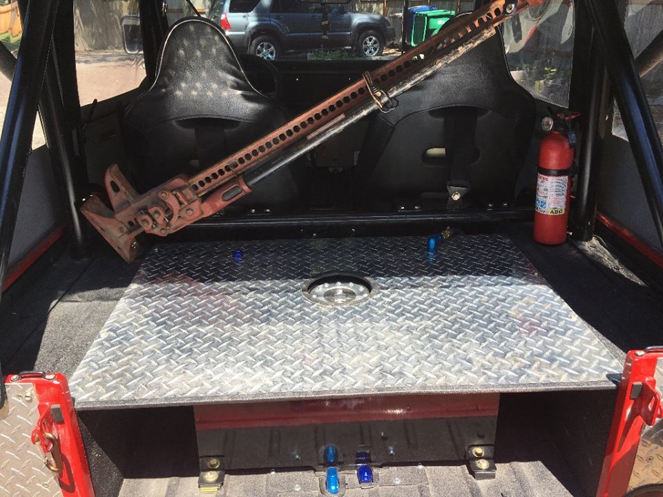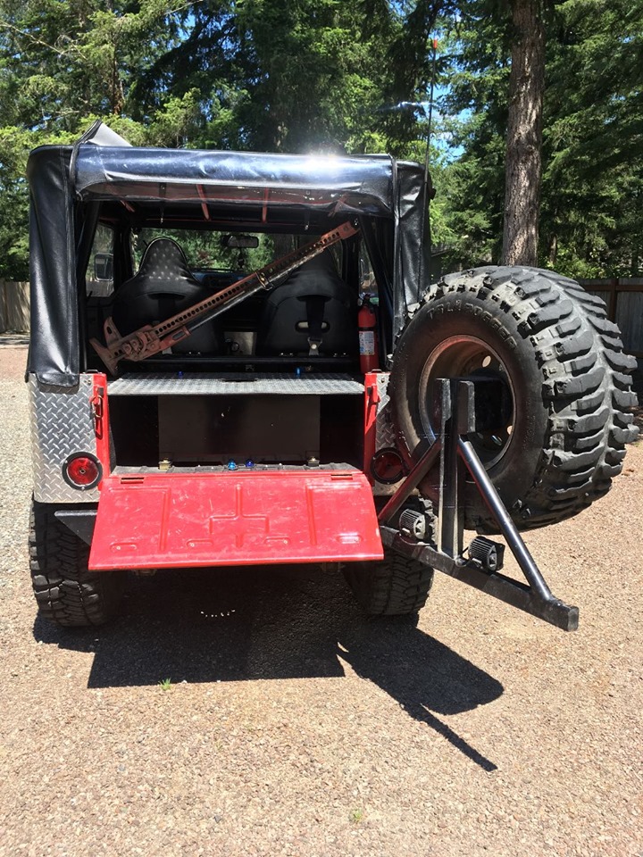 “1953 Willy’s Jeep • 350 GM crate motor – less than 5000 miles • Holley truck avenger carb • Aluminum radiator w/ electric fan • SM 465 4 speed transmission • Dana 20 transfer case – twin stick • Heavy duty skid plate • 1970 jeep chassis • Dana 30 front • Dana 44 rear • Detroit lockers front & rear w/ 4:88 gears • Saginaw power steering • Painless Wiring Harness • No leaks • New brakes • Near rear shocks • New wheels and tires – Goodyear MT/R 32 x 11.5 R15 Will also include a set of TSL boggers on chrome wheels – 33 x 14 R15 • Newer Bestop soft top • Bestop bikini top • Nice roll cage • Standard 10 gal fuel tank under drivers seat • 20 gal fuel cell plumbed with a 3 way valve so you can switch tanks on the fly • Raptor lined tub • Autometer phantom gauges • New headlights w/ H4 style bulbs • 4 LED pods mounted but not yet wired • Uniden CB • Optima Yellow top battery with kill switch • Smittybilt winch – 9500lb w/ synthetic rope This is a fun Jeep with enough power to scare you but it’s still able to crawl through the trails.”