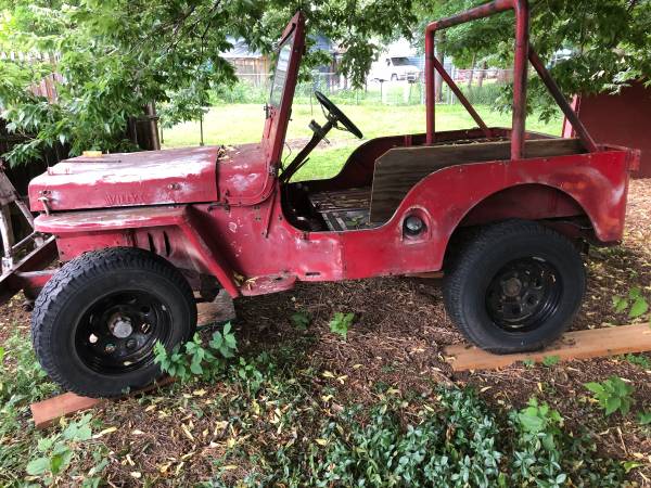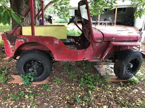 “cj 3a 1949 has dana 44 rear axle radiator fits but is wrong yr seats are good not running engine turns over by hand right front wheel is hard to roll like brake dragging”