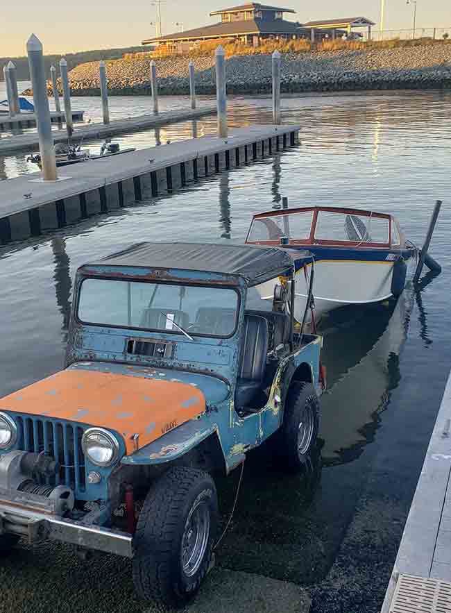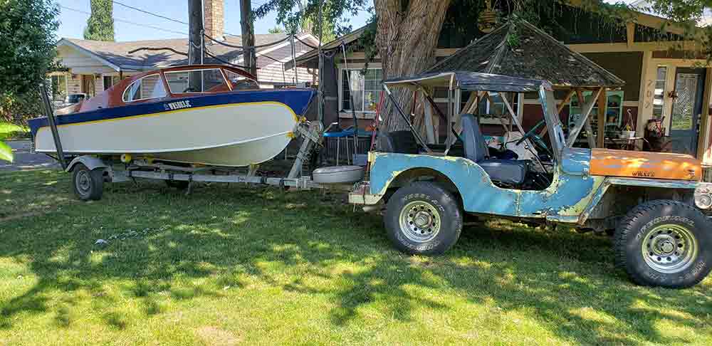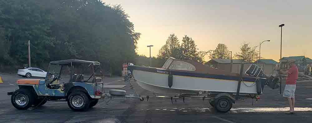 Bernd was busy again using his CJ-5 to haul a repaired motor in Austria, then later carried garden material to the dump, while Dan used his jeep to tow his boat to Puget Sound for a ride around the south Sound area.