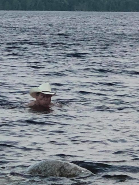 For reasons that remain unexplained, Cowboy decided to take a swim in the cold North Atlantic. Perhaps all the traveling had made him a bit ripe? Only his wife Donna can shed light on why he ended up in the water. Whatever helped him summon the courage to go for a swim, my hat is off to him (even though his hat is still on him). Go Cowboy!