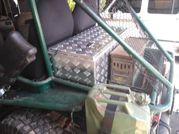 This is a 1958 modified Jeep body built by a professional roll cage shop.