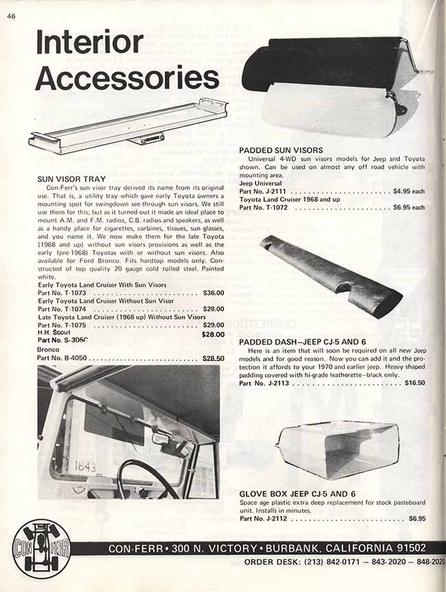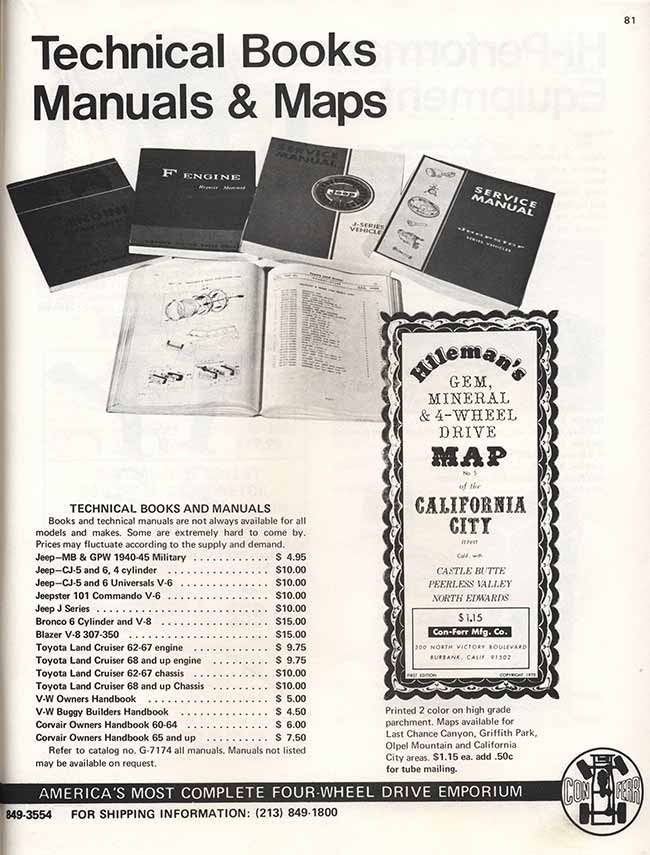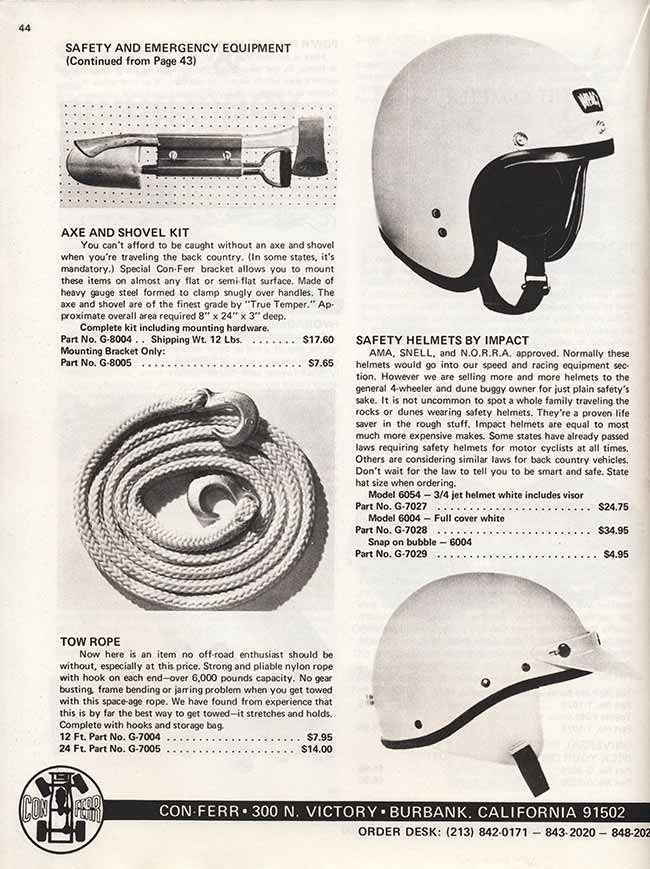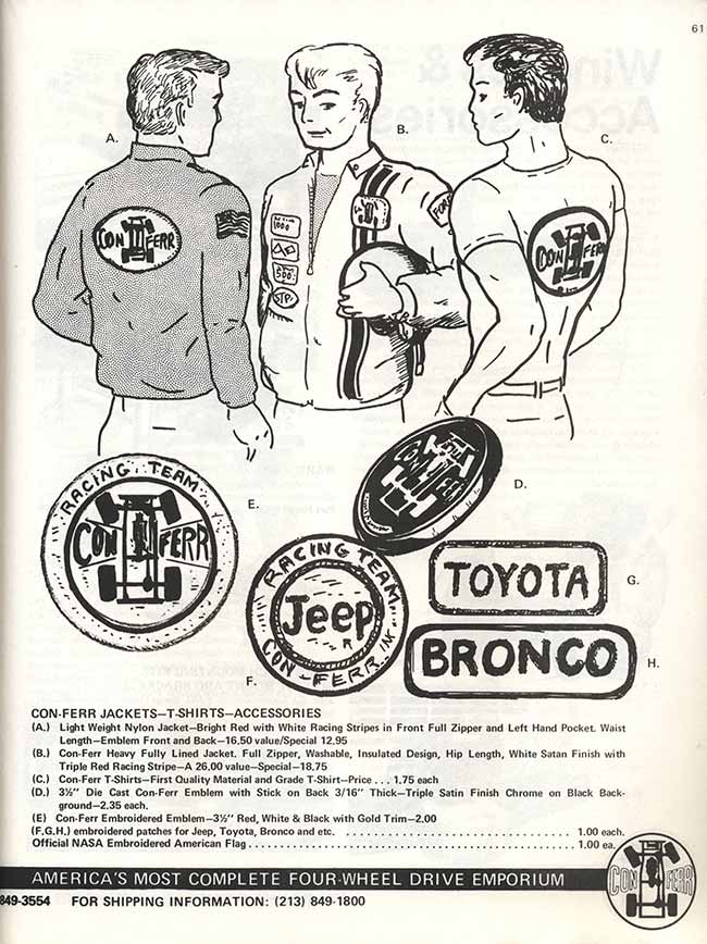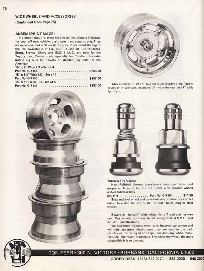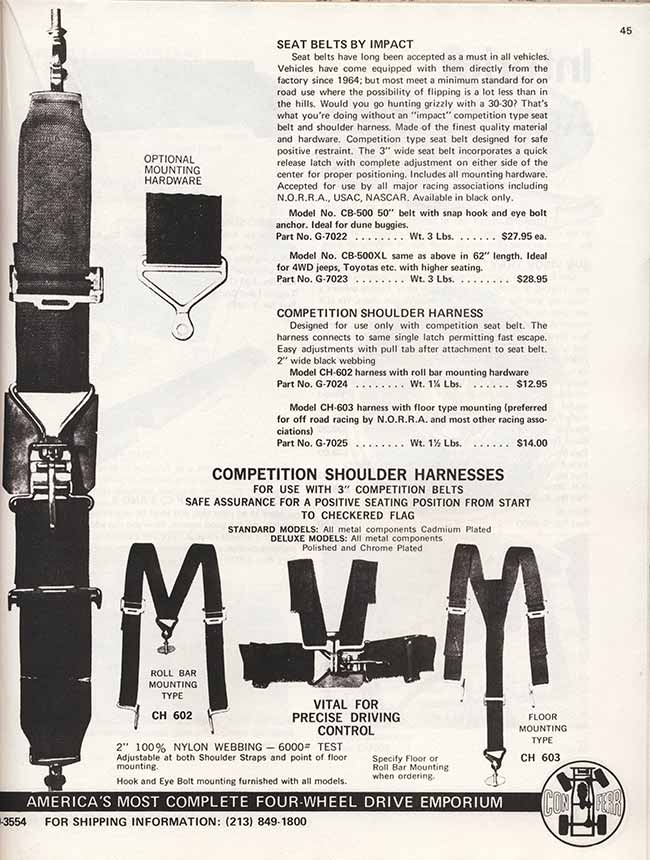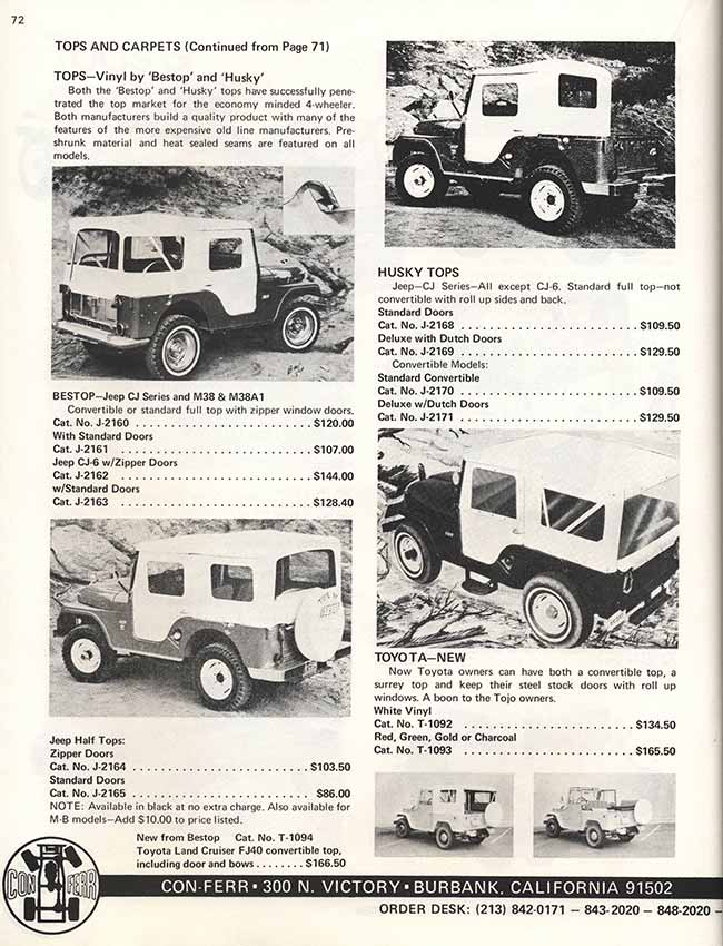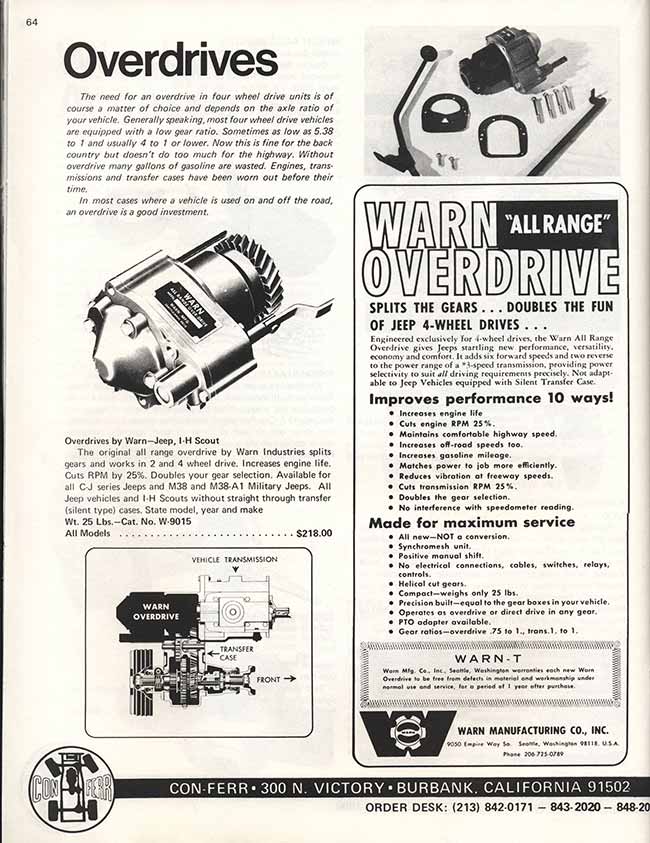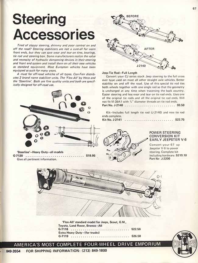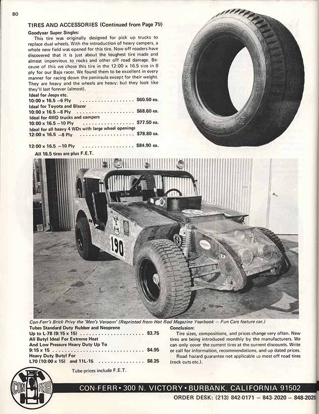 Hi Dave, thanks for posting the Confer catalog. It brings back some great memories during these difficult times. In 1970 I purchased a new Renegade 1 lime green Jeep and quickly removed the smooth tread G78-15 tires and installed new Gates XT Commando tires. I purchased them from a wonderful old Jeep dealership in Selingsgrove Pa. called MC Bonawitz & Son (now long gone). Those tires were the greatest for off road. Looking at the Confer catalog (which I always had close by) I saw that they sold for $49.00 and some change. Back then that was the bomb! I wore the pages out in that catalog. Thanks again for all you do with Ewillys. Regards, Bill Garland. Carlisle Pa.