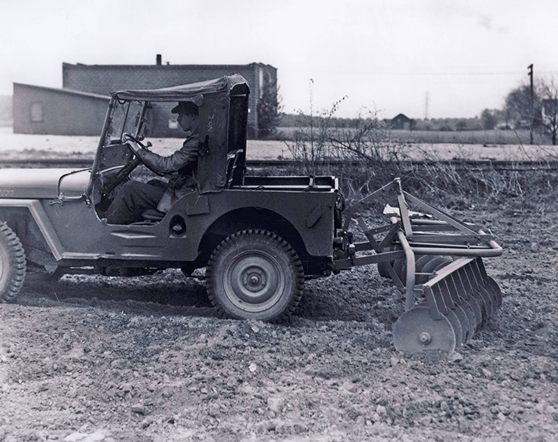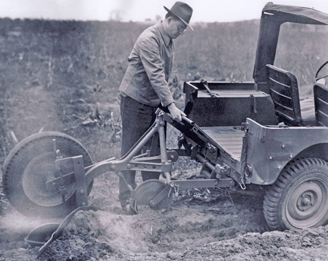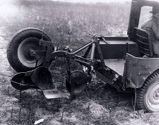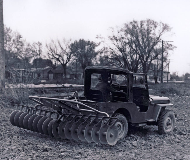 These photos shows a VEC CJ-2A with different implements. Note the passenger rear quarter panel damage. Perhaps that should have been a sign that perhaps the jeep wasn’t cut out for farming? (though I’m assuming the damage happened while farming).