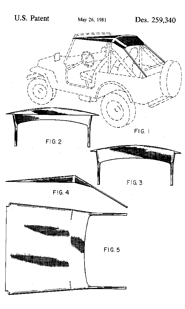 In 1978, James filed a second patent, this time for a product that we know as the “Bikini Top”. I didn’t realize the Bestop had the patent for this: