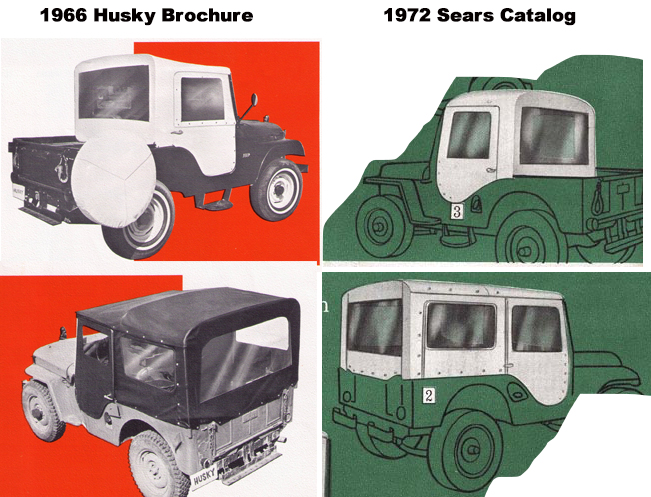 Below is a visual comparison of a 1966 Husky brochure and the 1968 Bestop brochure. The first three pages of the Bestop brochure kind of look like reworked versions of the 1966 Husky brochure (it’s this comparison that started my dive into this topic). And, yes, I realize the tops are somewhat different, especially at the back (Husky continued to advertise the full top into the 1970s, but dropped advertising for the half tops, the multiple doors, and other items).