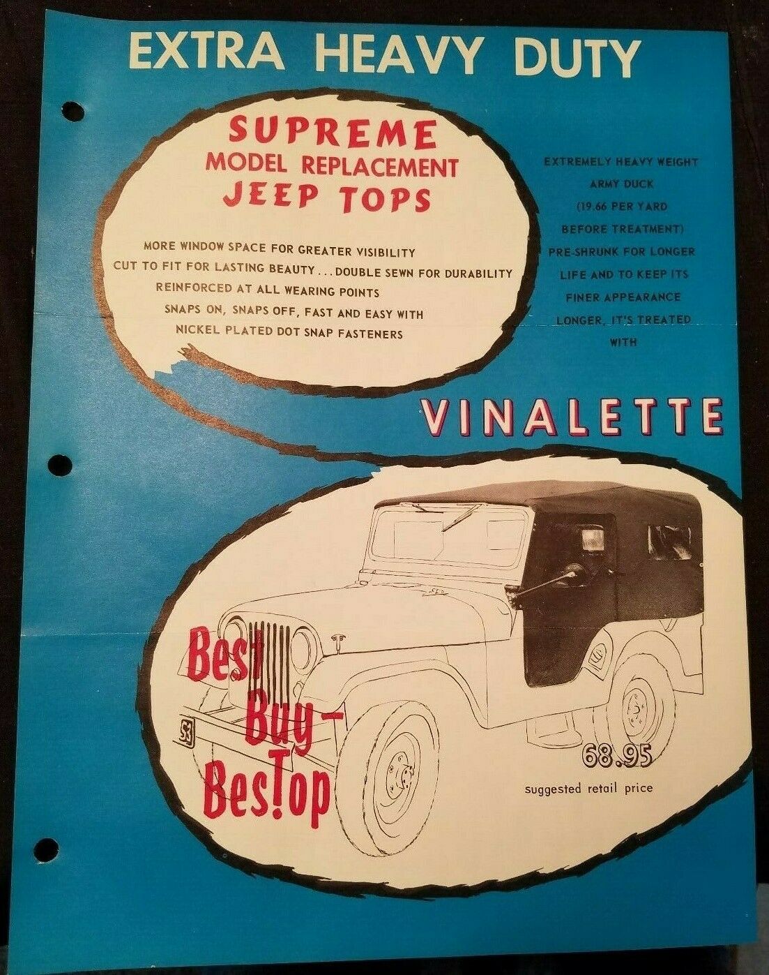 Still have a Bestop on my 48 CJ2A that was bought in 1975, still looks new, 44 years old, no complaints.