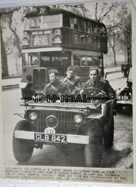 “1942 Press Photo U.S. Army Soldiers ride down London street in Military Jeep. .This is an original press photo. Four American doughboys ride down a London street in a peculiarly American vehicle, one of Uncle Sammy’s jeeps. Note how they are overshadowed by the familiar London double-deck bus. U.S. Army in London Photo measures 6.25 x 9.5 inches. Photo is dated 03-15-1942.”