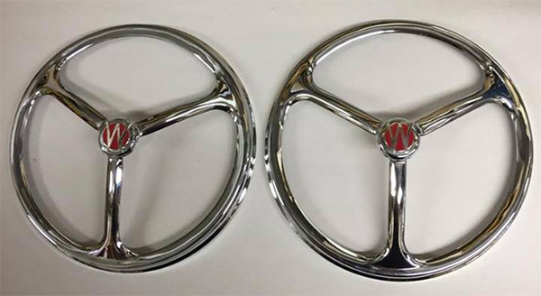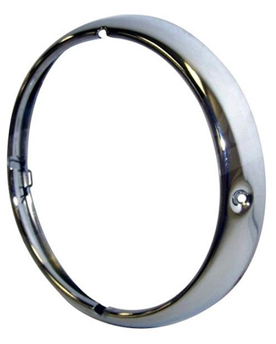 Early CJ-2A bezels were painted, not chromed, until approximately #38687, according to the CJ-2A page. As far as my research indicates, only Walcks carries new, unpainted bezels. This is the flatter style of bezel without the tab.