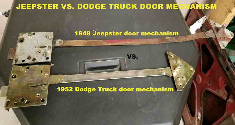 UPDATE: In his search for Jeepster door mechanicals, George learned that the parts used in a 1952 Dodge Truck were nearly identical to the Jeepster, just shorter. However, since he was able to eventually source a set of Jeepster doors, he didn’t try out this possibility. So, I thought in case someone else needed these parts that I’d let folks know that NOS parts are available for the Dodge Truck.