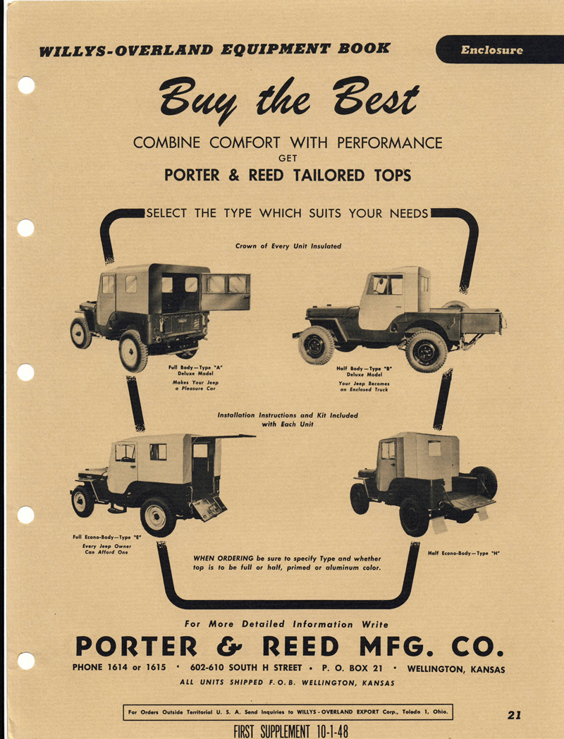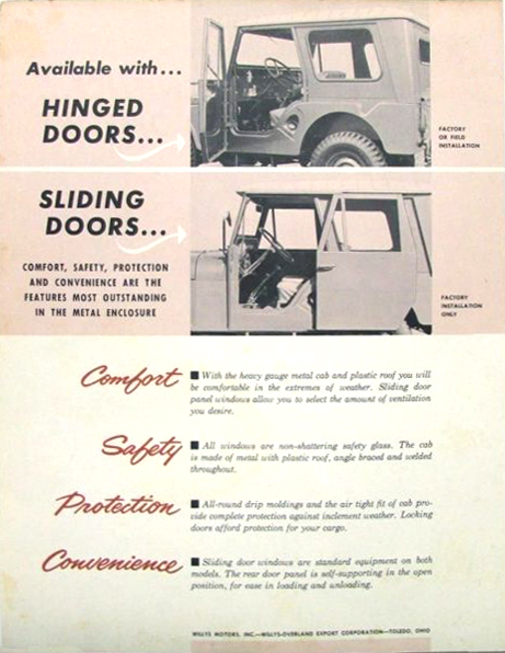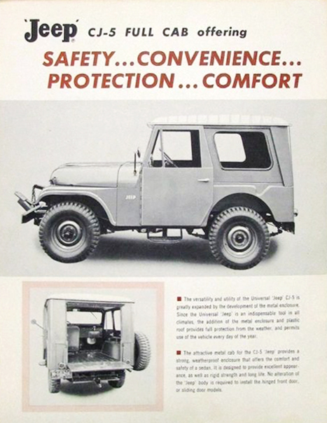 This brochure circa 1949 showed half and full cabs on a CJ-3A: