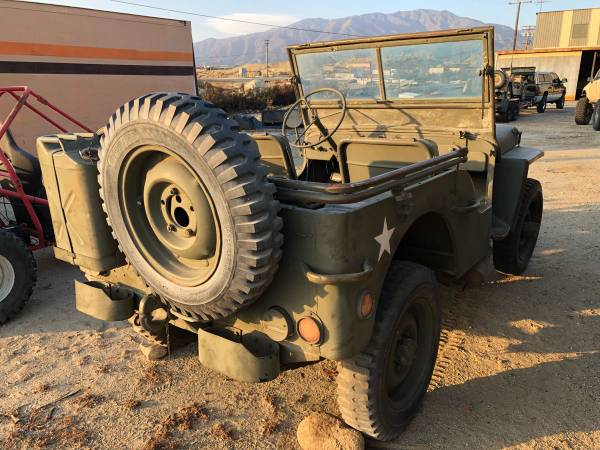 “Selling a 1940’s military Ford GPW. Clean CA title, out of the system. Very original and complete for its age. Ford script stamp on body, motor and drivetrain is complete, but not sure when it ran last. Very minimal rust in hat channels, all five original combat wheels, also have original air cleaner for it. See pics. Selling it as is. Price: $12500.”