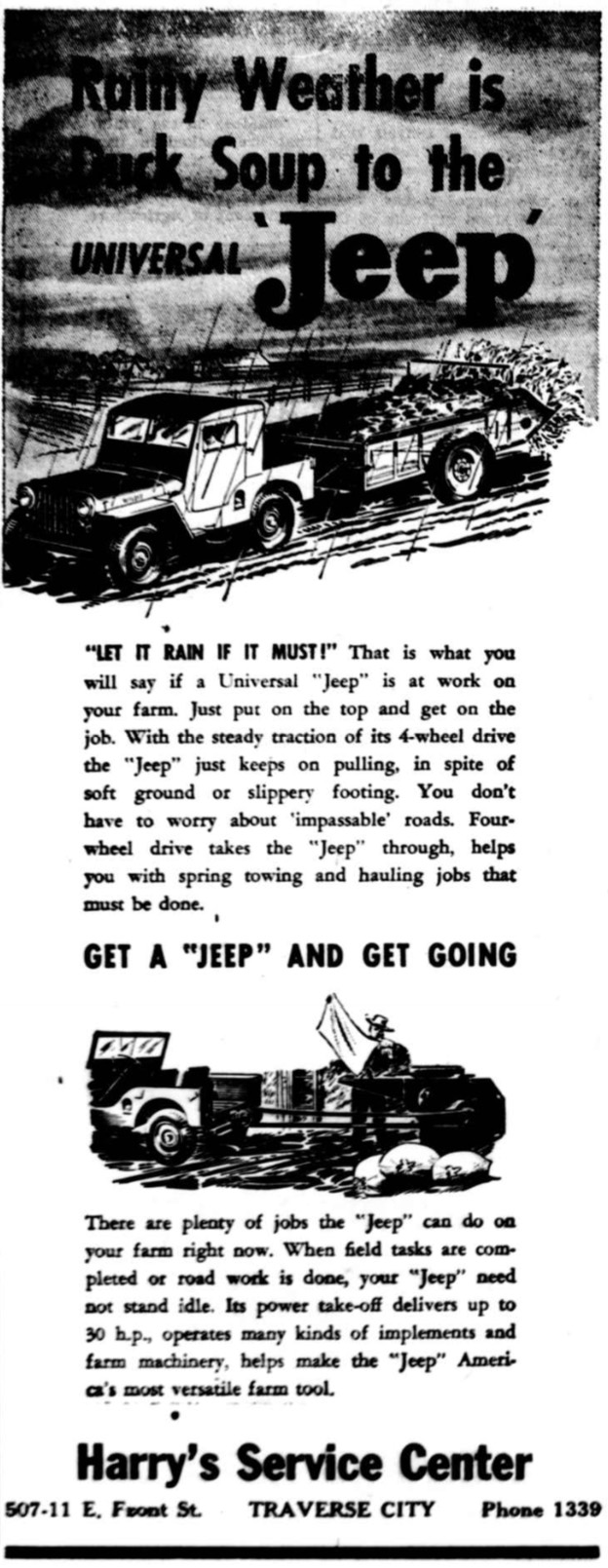 This ad appeared in the Oxford Ledger on March 10, 1948, published by A. B. Clothier & Son out of Oxford, Michigan. It later appeared in the Leelanau County times on March 25, 1948, published by Harry’s Service Center, Traverse City, Michigan.