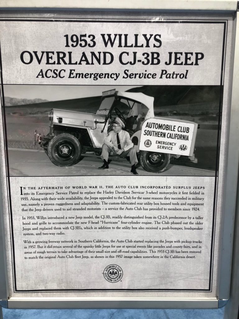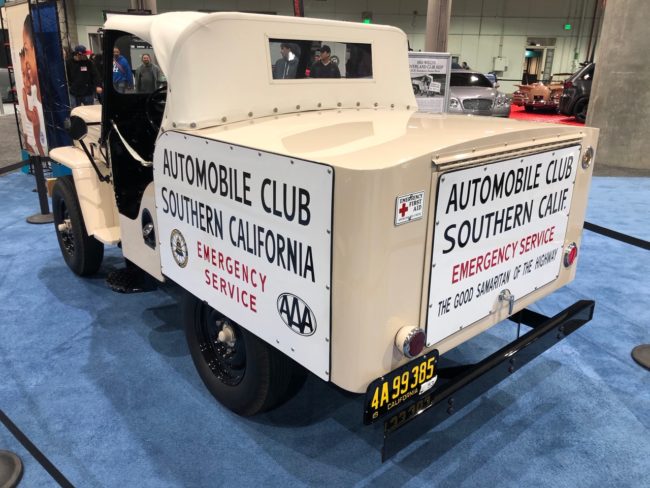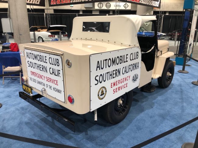 Bill Reiss shared these photos he took of a modified CJ-3B used by the Automobile Club of Southern California. It was a feature of the Los Angeles Auto Show earlier this week. (See an example of the club’s 2A set up from 1949 here).