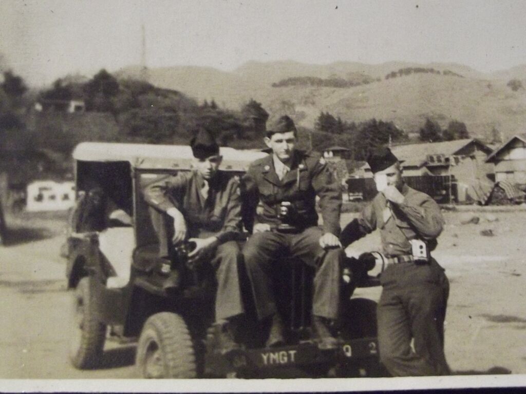 9. 1947? Three Soldiers Sitting on Jeep in Occupied Japan: